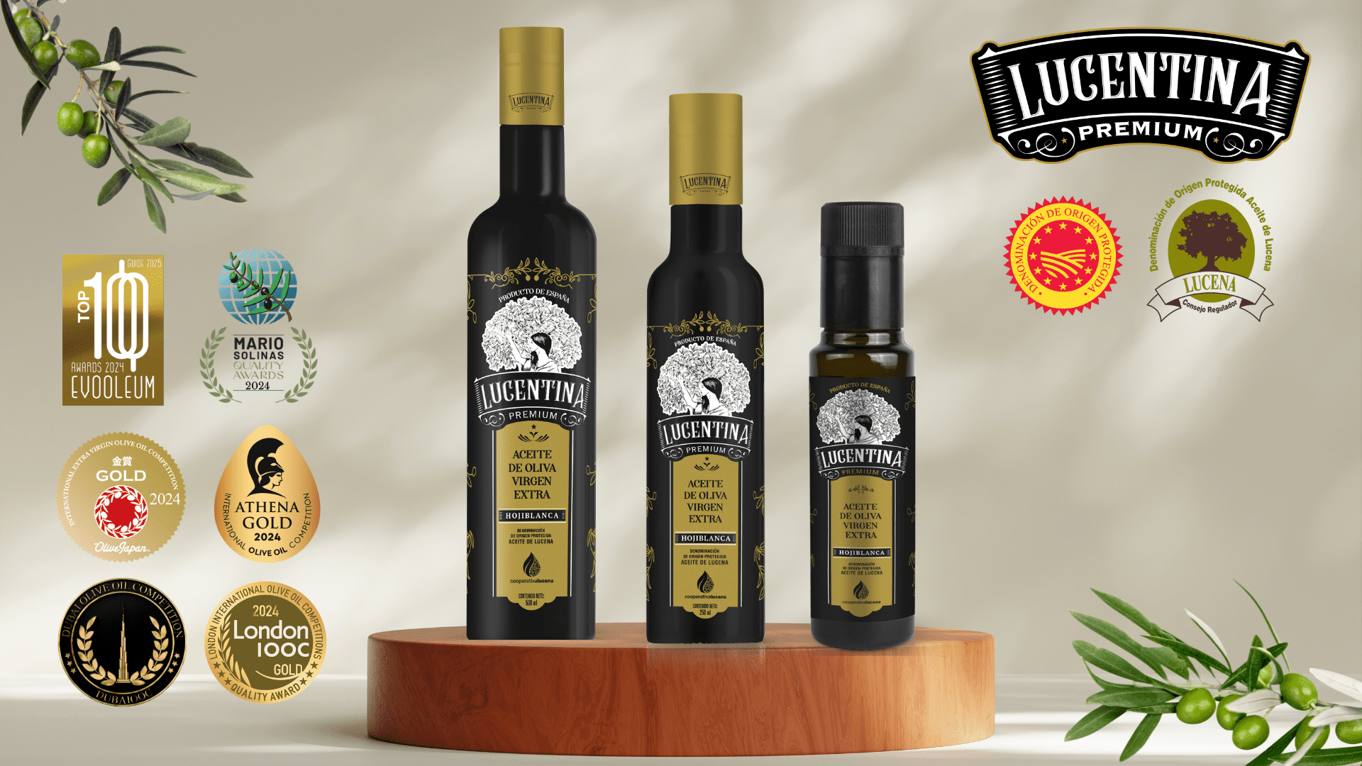 La Lucentina Premium ha sido galardonada en múltiples competiciones nacionales e internacionales, consolidándose como uno de los mejores aceites de oliva virgen extra del mundo.